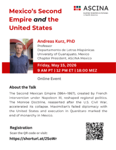 Andreas Kurz (Zwettl, 1968) studied Comparative Literature and Romance Studies in Vienna and Puebla (Mexico). He lives and works in Mexico since 1999. Since 2006, he is a professor at the Universidad de Guanajuato, where he founded the Master’s program in Latin American Literature, which he headed for six years. From 2016 to 2024, he was the head of the department. He has published books on Mexican Modernismo, the Cuban novelist Alejo Carpentier, questions of mimesis, and various topics in 19th-century Mexican literature. In 2013, his novel La joroba was published in Venezuela. Also in 2013, the volume El general Riva Palacio y la vajilla de Francisco José, which deals with some peripheral aspects of the Second Mexican Empire, was published in Querétaro. In 2017, he published the essay Viena: una ficción. In 2023, his book The French Intervention and the Second Mexican Empire appeared in Berlin. Andreas Kurz is a contributor to the cultural supplements of several Mexican daily newspapers and magazines. He is a level II member of the Sistema Nacional de Investigadores (SNI). He has published over 100 articles in academic journals and other media.